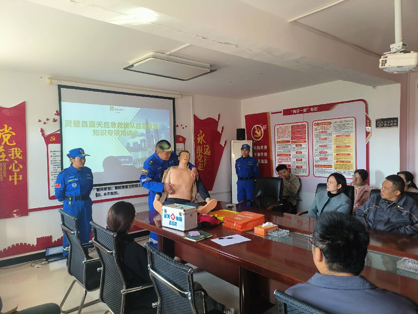 為進(jìn)一步提升員工的應(yīng)急救援能力,增強(qiáng)應(yīng)對(duì)突發(fā)事件的處置能力。11月7日,靈璧公司邀請(qǐng)靈璧縣藍(lán)天救援隊(duì)為員工開(kāi)展應(yīng)急救援知識(shí)培訓(xùn)。