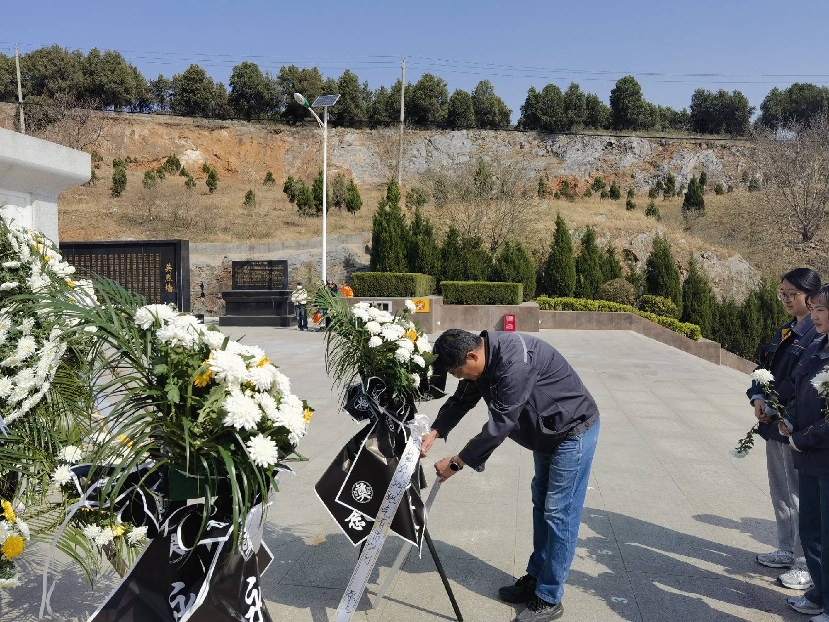 在莊嚴肅穆的烈士紀念碑前,全體黨員懷著崇敬的心情,整齊列隊,向革命烈士敬獻花籃,鞠躬默哀,表達對革命先烈的深切哀思和崇高敬意。隨后,黨支部書記帶領(lǐng)大家有序瞻仰烈士英烈墻,了解革命先烈的英勇事跡,學習革命先輩英勇奮斗、無私奉獻的精神。